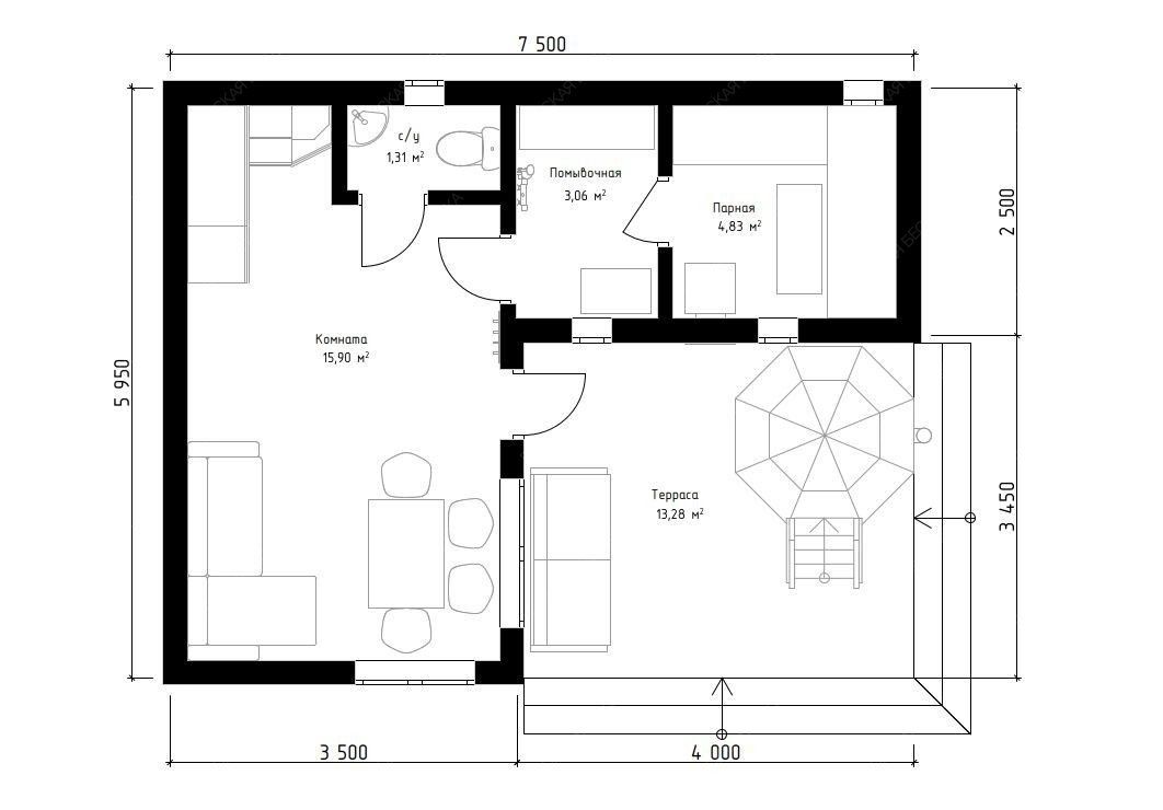 Конструкция изготовлена из хвойных пород древесины (ель, сосна)