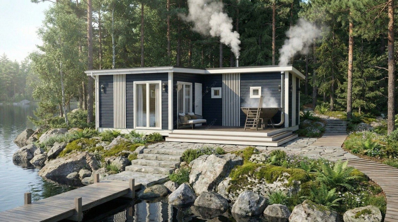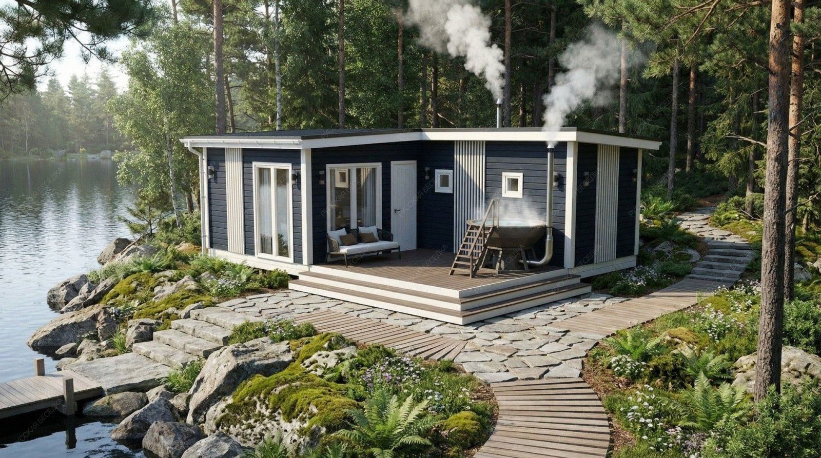 Огнебиозащита (бесцветная) или декоративный деревозащитный состав "Здоровый дом" (цвет на выбор) – нижняя обвязка, лаги, пол и цокольная доска.
