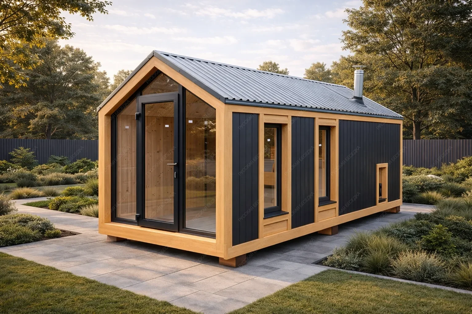 Мобильная баня «Росаль» в стиле барнхаус с габаритами 2,45x7 метров представляет собой компактное и самодостаточное сооружение площадью 17,5 кв.м. под двухскатной крышей. Ее вытянутая конфигурация реализует принцип линейной планировки, где все функциональные зоны — парная, помывочная и комната отдыха — последовательно соединены, обеспечивая эргономичное движение и эффективное использование каждого метра. Ключевой особенностью является сочетание мобильности, позволяющей быстро разместить объект на участке, и выразительной архитектуры в стиле барнхаус. Этот стиль характеризуется простыми формами, высокой двухскатной крышей, минималистичным фасадом и акцентом на натуральные материалы, что придает строению современную аутентичность. Отсутствие террасы компенсировано продуманным внутренним комфортом и целесообразностью, ориентированной исключительно на банный ритуал. Данная модель является идеальным решением для ценителей лаконичного дизайна, практичности и возможности получить полноценную парную даже на ограниченном пространстве без капитального строительства.