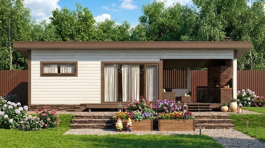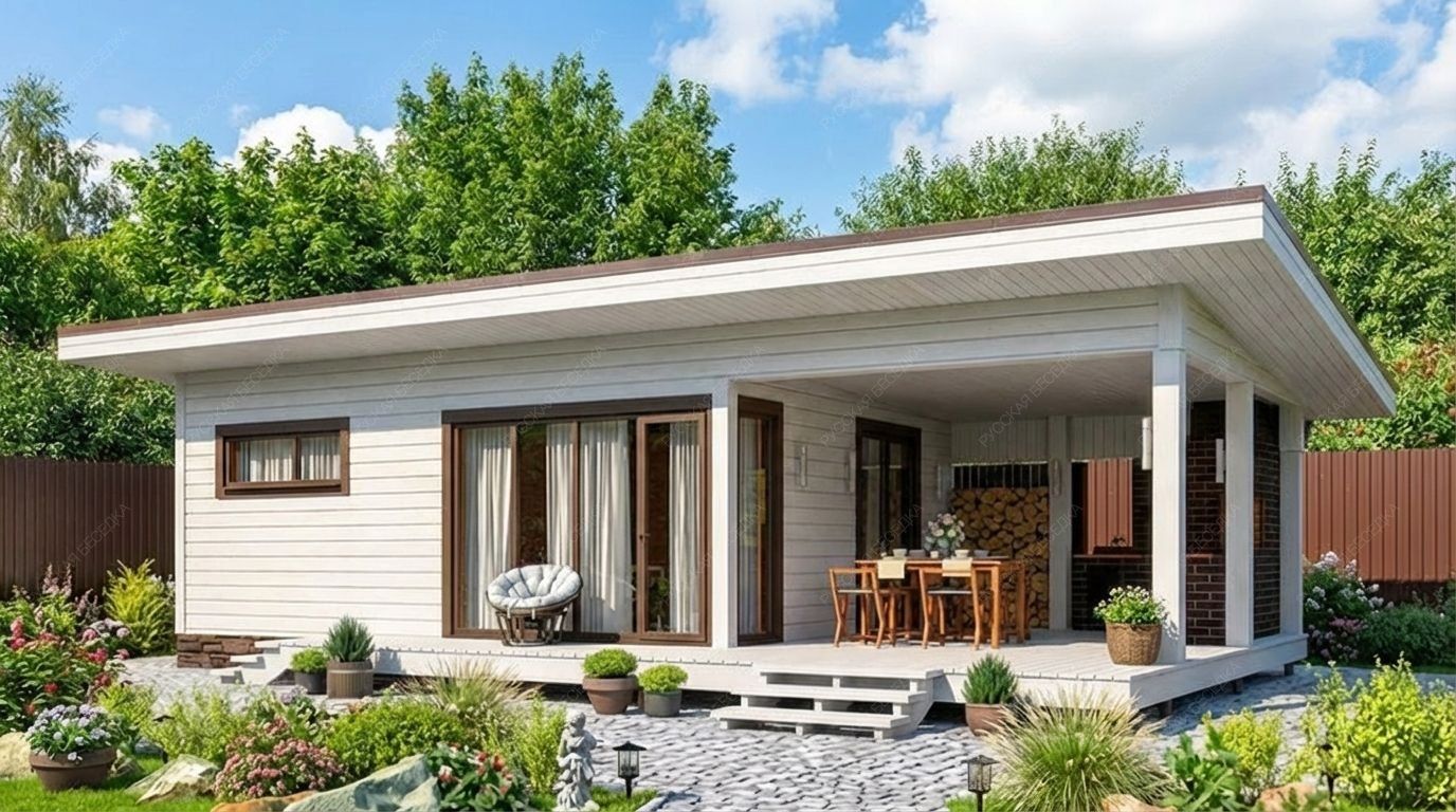 Каркасная баня «Сплав» размером 5х11 метров предлагает исключительно рациональную и просторную планировку общей площадью 55 кв.м. Ее архитектура с односкатной крышей отличается современным и лаконичным дизайном. Ключевой особенностью модели является интегрированная терраса, которая существенно расширяет полезное пространство для отдыха на свежем воздухе, плавно продолжая интерьер. Внутренняя компоновка продумана для максимального комфорта: просторная парная, функциональная душевая и отдельное помещение санузла. Центральное место занимает большая комната отдыха, способная стать полноценной гостевой зоной. Такая свободная планировка позволяет адаптировать пространство под индивидуальные потребности. Каркасная технология обеспечивает оперативную сборку и высокую энергоэффективность конструкции. Данный проект идеален для тех, кто ищет не просто баню, а многофункциональное место для отдыха большой компанией, где можно совмещать традиционные процедуры с приятным времяпрепровождением в любую погоду.