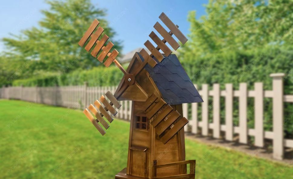 Большая мельница декоративная изготовлена из древесины хвойных пород. Для защиты от неблагоприятного воздействия внешней среды, различных вредителей и грибков, обработана антисептической пропиткой, и покрыта лаком. Прекрасный декоративный элемент для создания неповторимого деревенского колорита на участке. Особенно в сочетании с другими, правильно подобранными и установленными элементами садовой архитектуры.