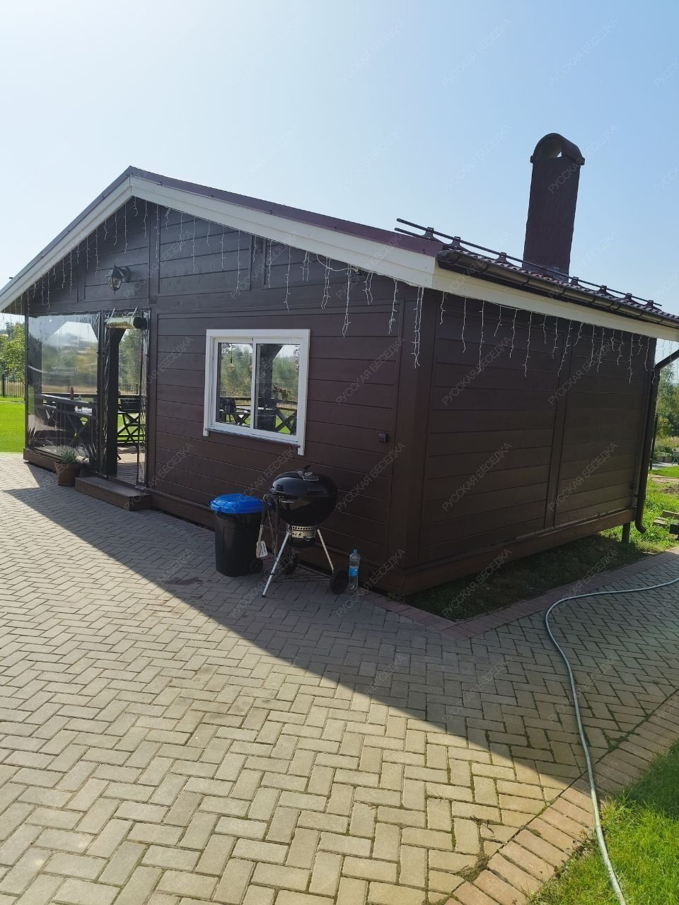 Имитация бруса 16×135 мм внутри, имитация бруса 21×135 мм снаружи.