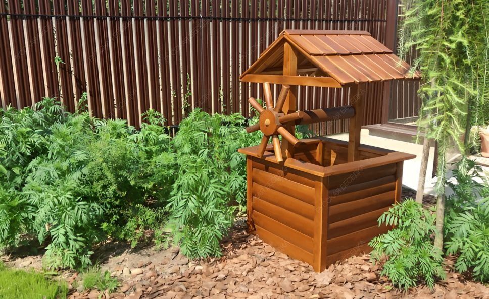 Идеальная дача, прежде всего, удобна и комфортна. А элементы, используемые для ее украшения, действительно радуют глаз. Выбирая их, важно соблюсти баланс между растительностью и декором, чтобы не получилось переизбытка. Одним из самых популярным изделий для сада является декоративный деревянный колодец. Не рабочий, а именно декоративный – для украшения зоны отдыха наряду с другими изделиями. Кстати говоря, колодец из дерева для декора сада может взять на себя роль оригинального кашпо, если поставить внутрь него вазон с цветами. Многие дачники желание купить маленький деревянный колодец объясняют необходимостью закрыть им люк септика или водопроводные коммуникации. Другим же он нужен для создания ландшафтной композиции. И в том и другом случае колодец прекрасно справится с возложенными на него задачами.