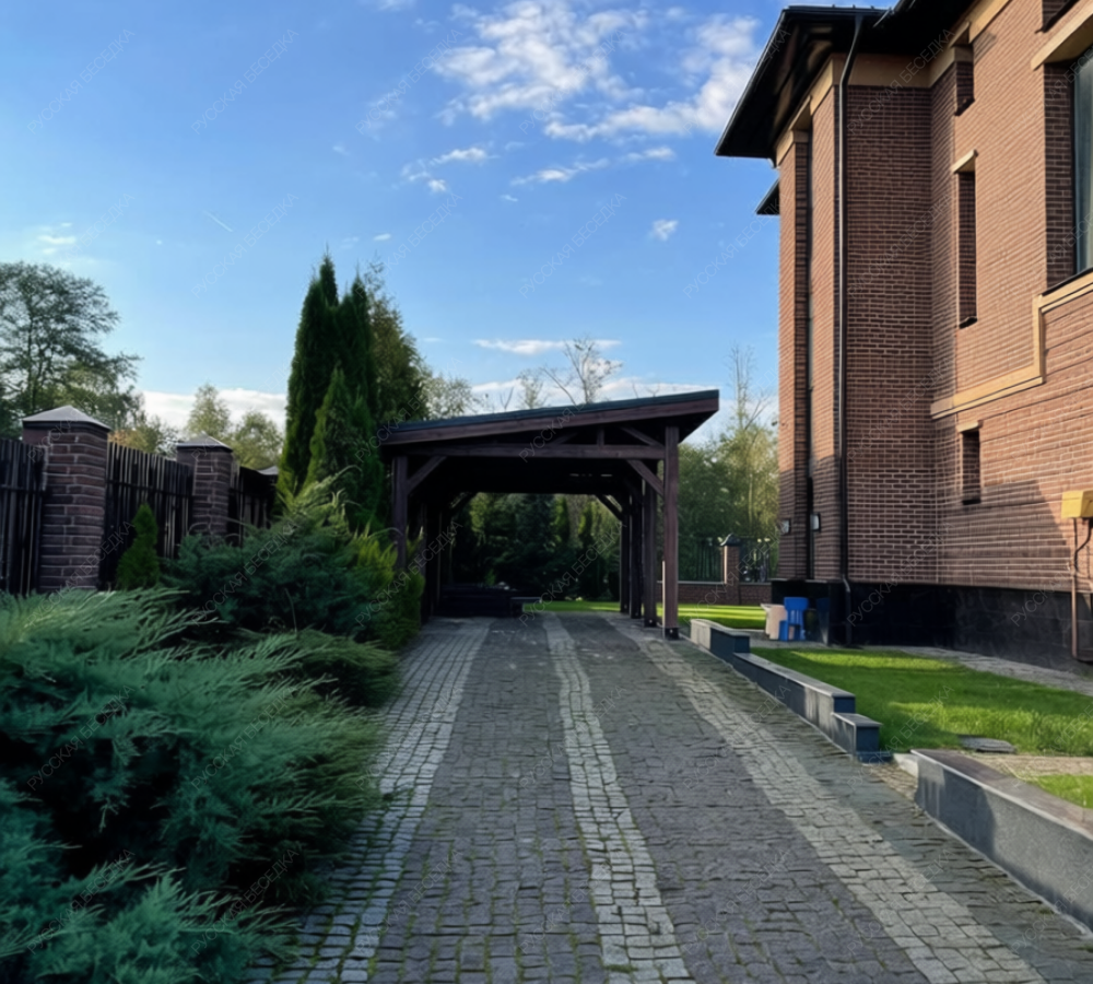 Навес из дерева послужит отличным парковочным местом для одного или нескольких автомобилей.