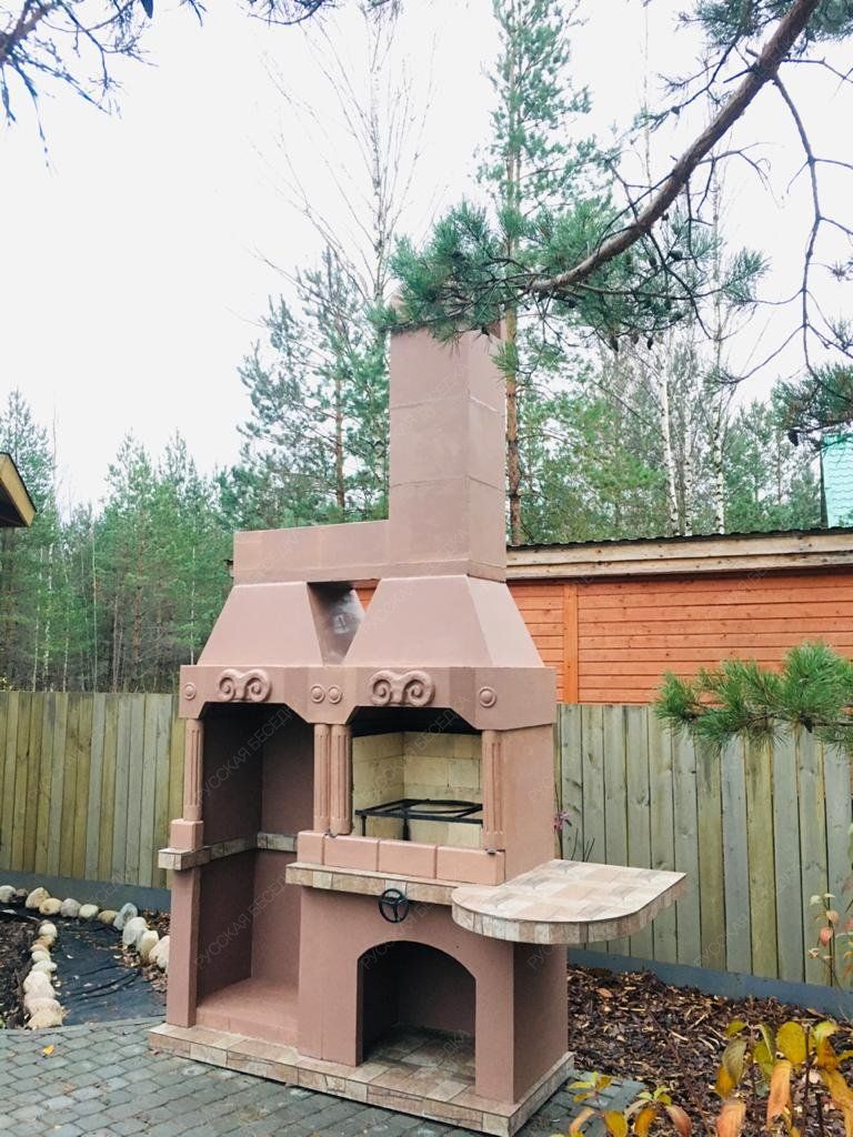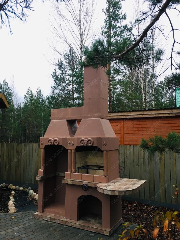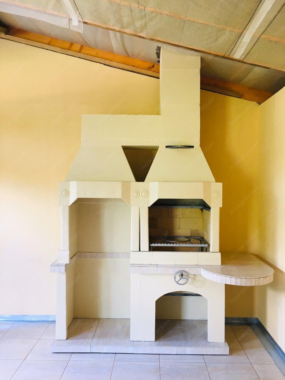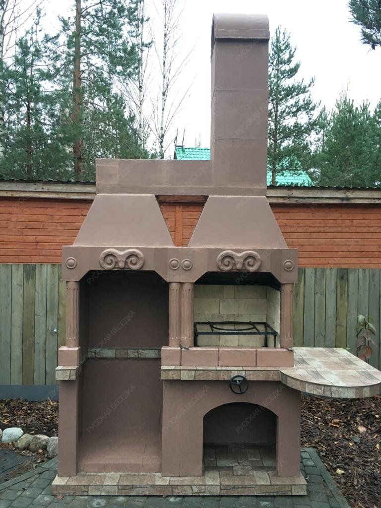Барбекю-комплекс сделан из армированного огнеупорного бетона с добавлением керамзита.