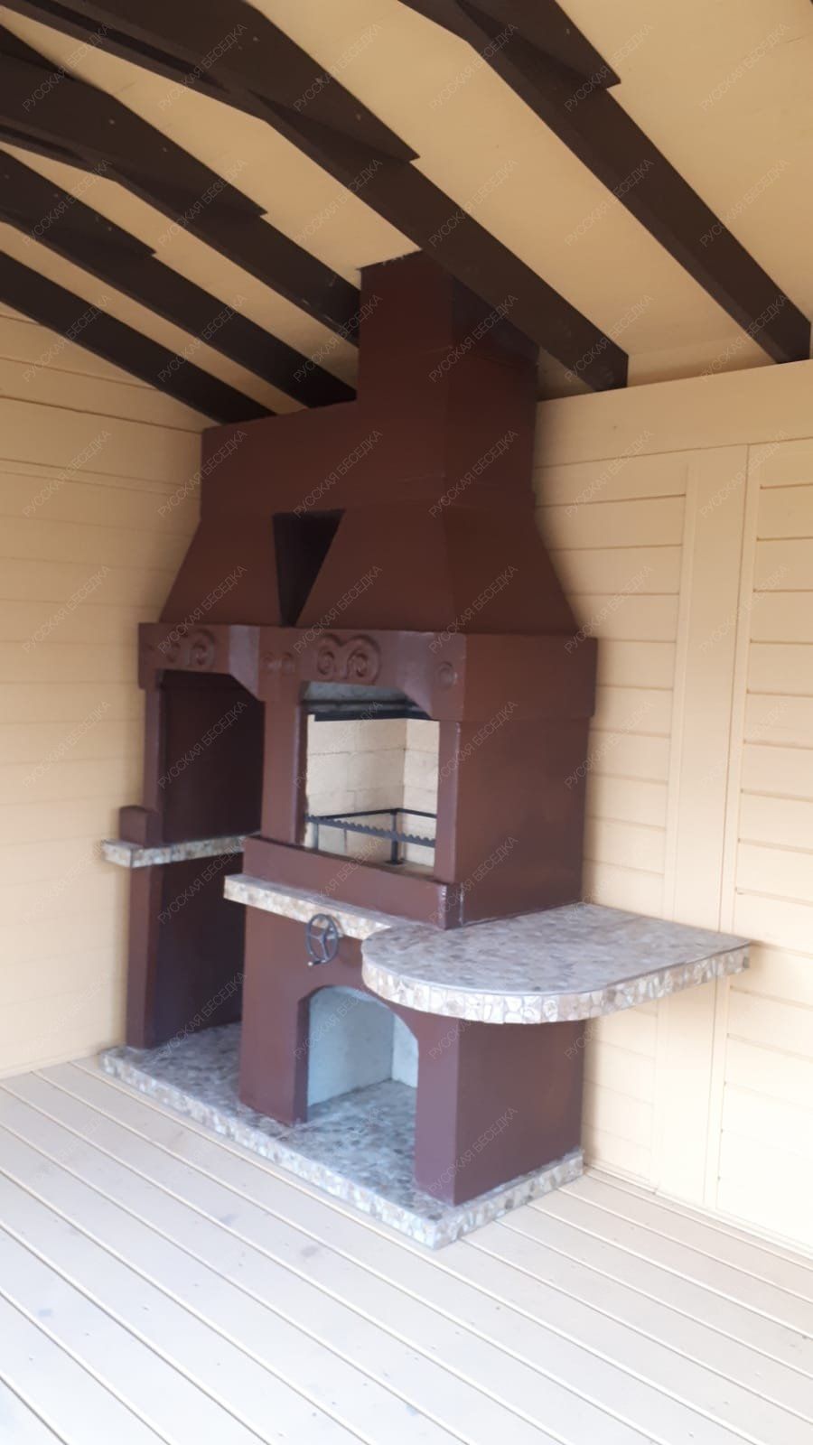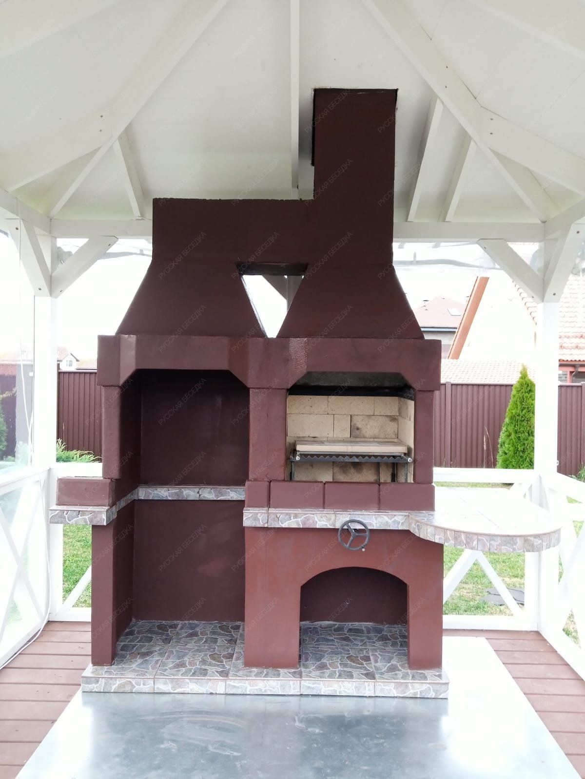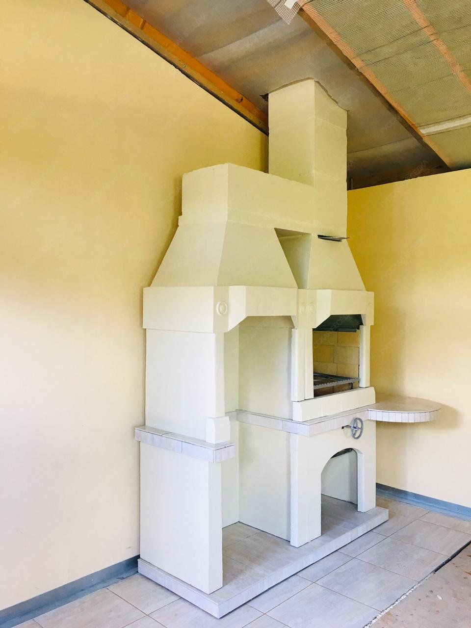 Барбекю-комплекс сделан из армированного огнеупорного бетона с добавлением керамзита.