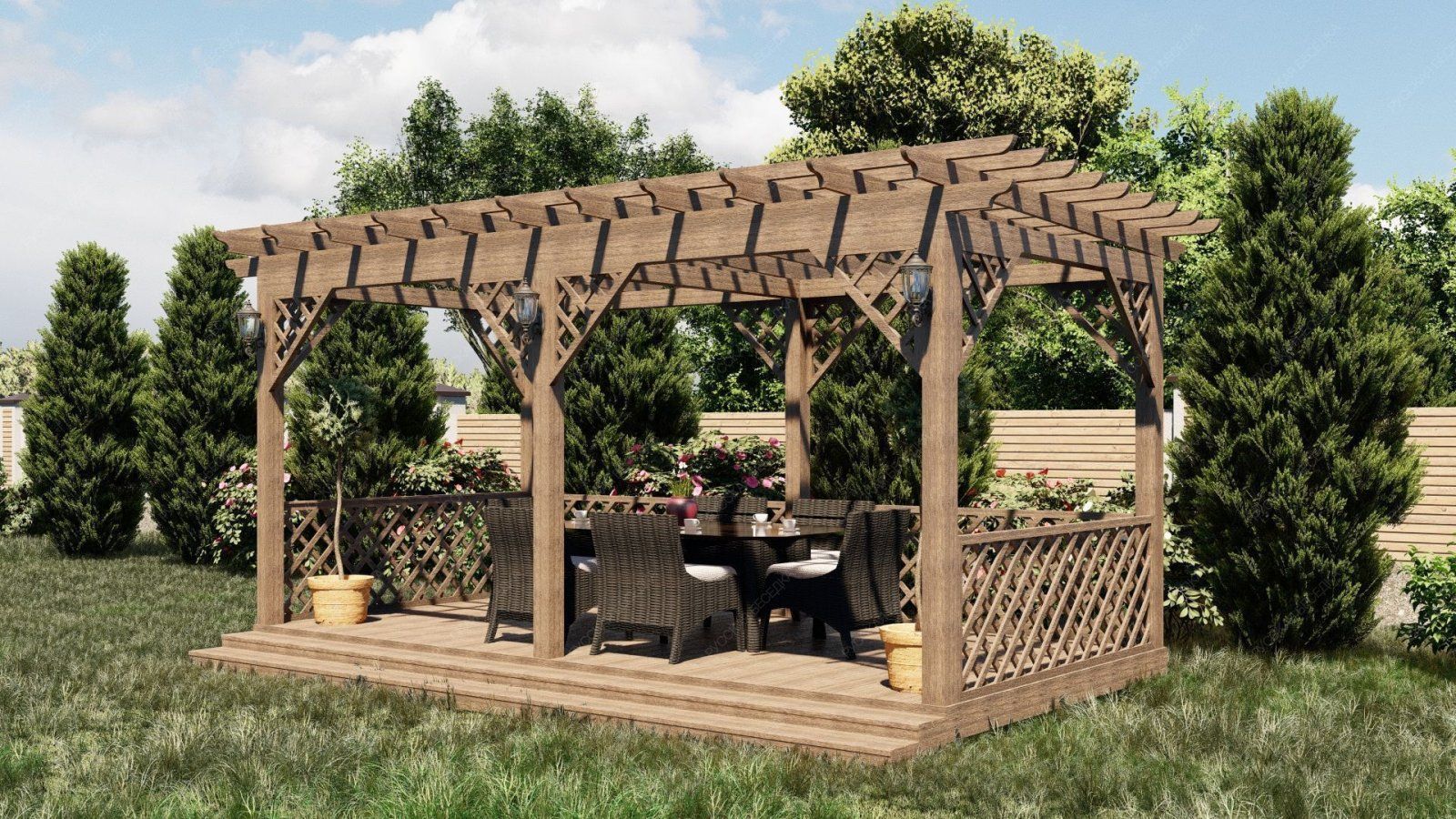 Пергола с навесом обеспечивает надежную защиту от солнечных лучей, создавая тенистое пространство для отдыха. Она станет идеальным местом для встреч с друзьями, чтения книг или приема пищи на свежем воздухе.
