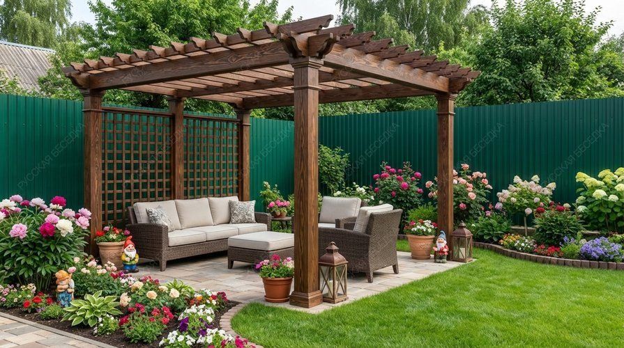 Перголы из дерева сочетают в себе природную красоту и современные дизайнерские решения, создают идеальное место для отдыха и различных видов досуга на открытом воздухе. Перголы могут стоять отдельно или быть частью композиции с другими элементами сада. Деревянная пергола придаст вашему садовому участку теплую и уютную атмосферу.Также пергола может служить опорой для плетущихся растений - только представьте, как приятно находиться в окружении цветущего клематиса или пышных роз! Дополнительные элементы, такие как встроенное освещение, декоративные решетки, качели или скамейки, могут усилить визуальный эффект и создать еще более комфортное пространство. А если в конструкцию перголы добавить подиум, то он может служить местом для расслабления или стать сценой для семейных мероприятий. Пергола с навесом обеспечивает надежную защиту от солнечных лучей, создавая тенистое пространство для отдыха. Она станет идеальным местом для встреч с друзьями, чтения книг или приема пищи на свежем воздухе. Любая пергола не только украшает ваш сад, но и предоставляет функциональное пространство для приятного времяпровождения на природе с семьей и друзьями.