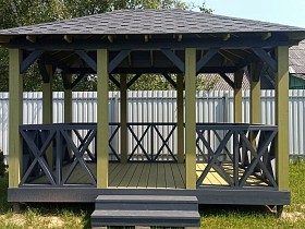 Беседка выполненная из лучших пород древесины, прослужит долгие годы и не потребует особого ухода и обслуживания. Специальные лакокрасочные материалы которые мы используем, предотвратят старение, гниение и заражение грибком конструкции кухни. Используемая огнебиозащита образует полупрозрачное полуматовое покрытие, стойкое к влаге, УФ-излучению, перепадам температуры и другим атмосферным воздействиям.