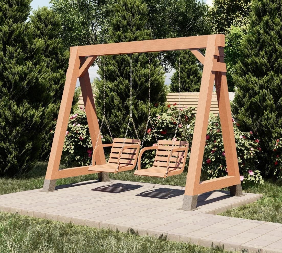 Эти качели идеально вписываются в ландшафт вашего участка, добавляя ему стильный и современный акцент. Они станут любимым местом для всей семьи, где можно провести время в общении и отдыхе.