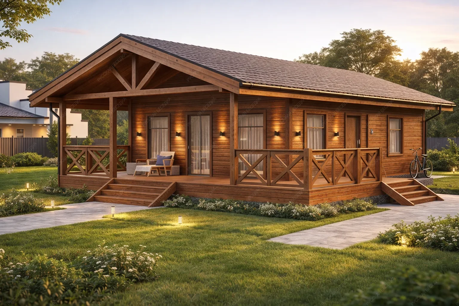 Садовые дома из хвойных пород древесины — это идеальное решение для обустройства загородного участка. Просторные и уютные, они отлично подходят для летнего проживания, выполняя функцию гостевого дома или компактной дачи, где можно с комфортом проводить тёплые месяцы вдали от городской суеты. В основе конструкции — массив сухой строганной доски камерной сушки и клееный брус, прошедшие тщательную обработку. Сорт древесины АВ по лицевой стороне обеспечивает чистую, эстетичную поверхность с благородной текстурой натурального дерева. Хвойные породы (ель и сосна) создают внутри особый микроклимат: воздух наполняется лёгким ароматом смол, а естественная способность древесины дышать поддерживает комфортный уровень влажности даже в жаркие дни. Такие постройки органично вписываются в любой ландшафт, не требуя массивного фундамента и сложного ухода. Внутреннее пространство может быть организовано по собственному усмотрению: от зоны отдыха до компактной спальни или столовой. Это полноценное жилое пространство, где каждая деталь продумана для того, чтобы пребывание на свежем воздухе было максимально комфортным. Капитальность конструкции, обеспеченная качественными материалами, гарантирует долгие годы эксплуатации. Садовый дом становится не просто постройкой, а любимым местом встреч с близкими и уединённого отдыха на лоне природы.