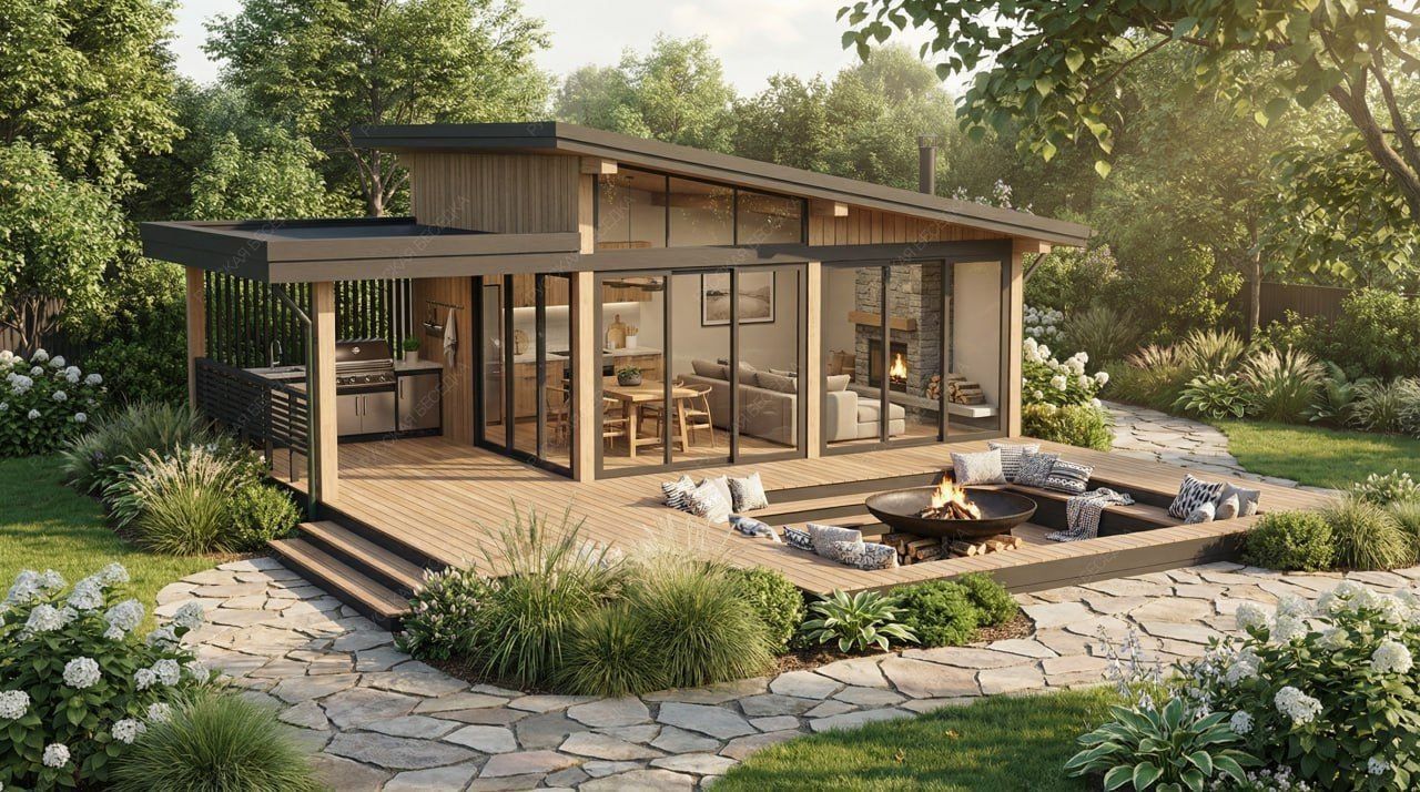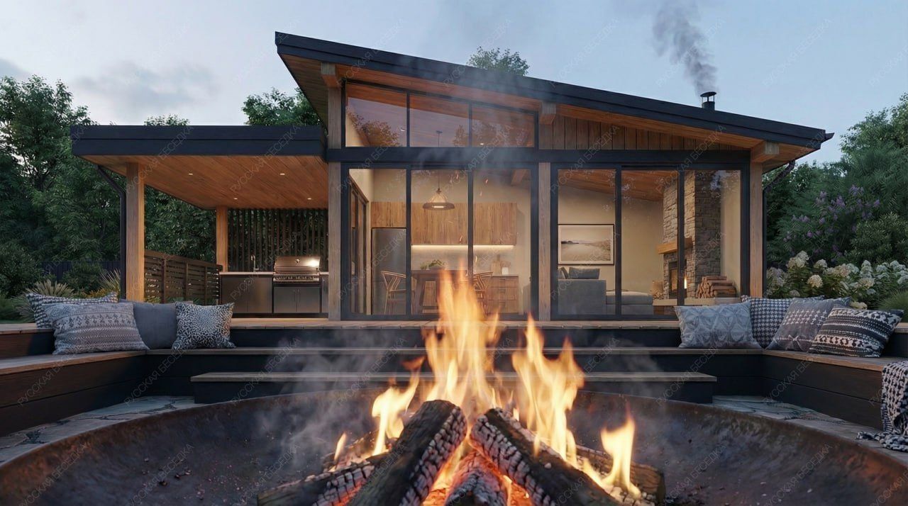 Отличительной особенностью зон отдыха является их многофункциональность: вы можете готовить на просторной веранде, организовать обеденную зону под навесом или в закрытой части, расположить летний кинотеатр под открытым небом, интегрировать в конструктив террасы бассейн или детскую площадку.